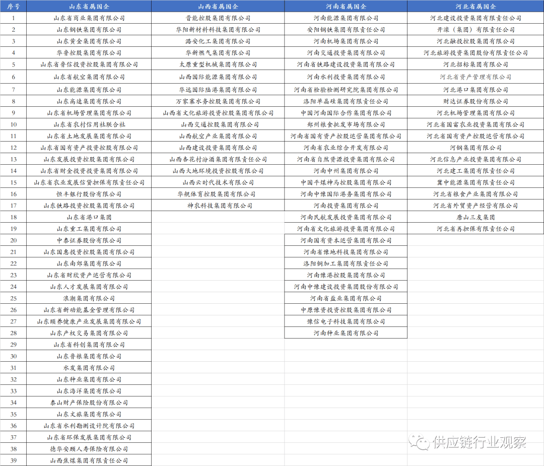 省属国企凡是正在区域内储蓄积累最优良的财产资本、金融资本和“行政”资本,此是开展供应链金融适宜的企业类型之一。外行业分布上看,省属国企次要涵盖金融、建工、交通根本设备投资扶植(高速公、轨道交通、铁扶植)、商业买卖(产权买卖、集中采购等)、物流根本设备(如机场、口岸)、矿产资本、林业资本、高端制制等,具有丰硕的供应链金融开展的场景。江山四省指河南、、山东、山西。这四个省,又被称为菜园子、气罐子、粮坛子、矿坑子。因各类资本取工农业资本不婚配,而被网友以“江山四省”自嘲之。但正在供应链金融范畴,我们认为这四个省的国企是走正在了全国相对前列的。以至正在政策、专营机构设置、平台扶植、产物立异等方面,四省的某些做法遥遥领先。按照各地国资委披露的监管企业名录,江山四省共有省属国企103家,数量上占全国比沉的16%摆布。此中,属国企38家、山西省属国企18家,河南28家,19家。具体名录如下,下表山西焦煤应为山西省属国企: