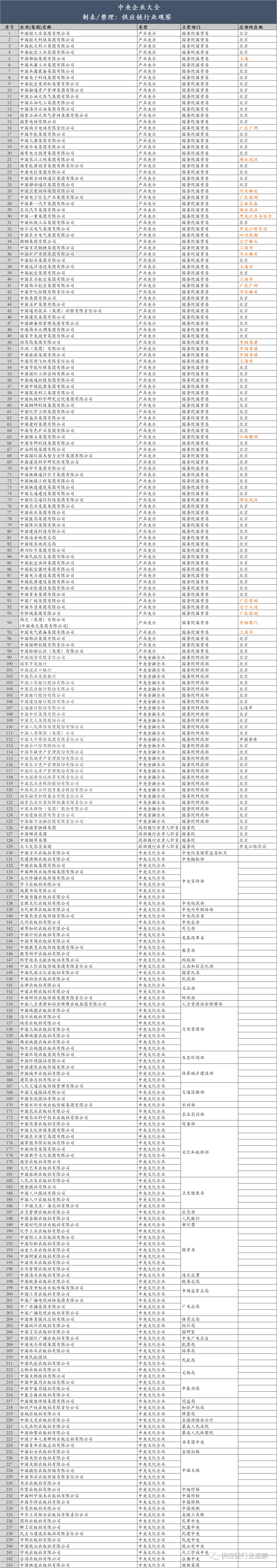 我国目前各类央企共243家,此中有列入国务院国资委央企名录的央企98家、列入财务部地方企业名录的央企145家。这些央企和国企正在2022年的停业收入是82。6万亿,净利润是4。32万亿,上缴税收5。93万亿。约有员工3390万。4月3日,易华录发布通知布告暗示公司收到现实节制人中国华录集团无限公司(以下简称华录集团)通知,华录集团正正在取中国电子科技集团无限公司(以下简称中国电科)规画沉组事项,华录集团拟整合进入中国电科。华录集团取中国电子科技集团整合后,国务院国资委监管的地方企业数量或将由现正在的98家削减为97家。排名1-53的为副部级央企。前53家地方企业的董事长、党委(党组)、总司理的人选由地方局常委会研究决定,这取一般副部长级干部的任免权限不异,因而被认为相当于副部级干部。所以,前53户正在报道中被称为中管企业,可是正在地方发文中,一般称为部门国有主要企业。除前53家央企,其余央企的代表人(大都是董事长)须报国务院党组任前存案同意。其监管由国务院国资委企业带领人员办理二局(简称“企干二局”)担任。前1-10为涉军工央企,别离为:中国核工业集团、中国航天科技集团、中国航天科工集团、中国航空工业集团、中国船舶集团、中国刀兵工业集团、中国刀兵配备集团、中国电子科技集团、中国航空策动机集团、中国融通资产办理集团。第11-22为能源类央企,此中11-14为石油类央企,别离为中石油、中石化、中海油及国度石油天然气管网集团;15-22为两大电网(南方电网、国度电网)及六大发电集团(华能、大唐、华电、国电投、三峡和国度能源集团);23-27为通信及电子消息央企,别离为:中国电信、中国联通、中国挪动、中国卫星收集集团、中国电子消息财产集团;28-33为配备制制类央企,别离为:中国一汽、春风汽车、中国一沉集团、中国机械工业集团、电气集团、中国东方电气集团;34-37为矿产资产类央企,别离为:鞍钢、中国宝武、中国矿产资本集团、中国铝业集团;38-41为交通运输行业央企,中国近海海运集团、中国航空集团、中国东方航空和中国南方航空集团。42-43为涉农类央企,包罗中国中化和中粮。此外,包罗中国五矿集团、通用手艺集团、中建集团、中国储蓄粮集团、中国南水北集结团、国投集团、招商局集团、华润集团、中国旅逛集团、中国商飞集团分属分歧业业。此外,正在这98家央企中,国务院国资委核准的以金融为从业的央企共3家,包罗中国五矿集团等。以房地产为从业的央企共16家。地方金融企业名录由财务部发布,目前共27家。地方金融企业共分地方办理带领人员的金融企业(以下简称中管金融企业)和其他地方金融企业。其他地方金融企业则为施行国有金融本钱办理相关轨制,由财务部代表国务院履行国有金融本钱出资人职责,纳入国有企业运营预算办理、担任组织实施年度绩效评价等工做。此中中管地方金融企业15家,别离为中国投资无限义务公司、三大政策性银行(国度开辟银行、中国进出口银行、中国农业成长银行)、五大国有贸易银行(工行、农行、中国银行、扶植银行、交通银行)、两大金控央企(中信集团、光大集团)及四大安全集团(中国人保、中国人寿、承平安全、中国出口信用安全集团)。其他地方金融企业12家,别离为四大资产办理公司(华融、长城、信达、东方)、中债登、中国农业再安全、中国政企合做投资基金股份无限公司、国度融资基金无限义务公司、国度农业信贷联盟无限义务公司、中国再安全(集团)股份无限公司、中国建银投资无限义务公司及中国银河金融控股无限义务公司。由国务院授权财务部履行出资人职责的企业共4家,别离为中国国度铁集团、中国邮政集团、中国烟草总公司、北大荒农垦集团无限公司。