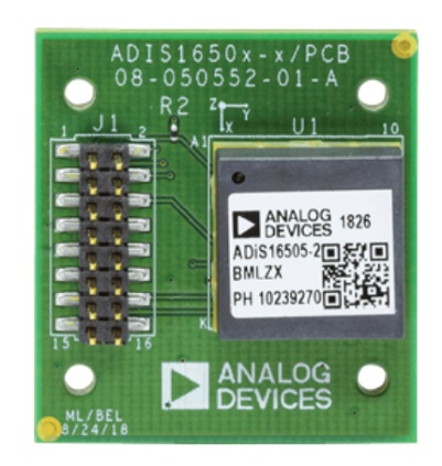 IMU传感器次要用于活动检测,以及通过加快度和角速度来丈量活动强度。本示例选择利用ADIS16500IMU传感器(图1),由于取复杂且高贵的分立设想方案比拟,该传感器可以或许为切确的多轴惯性检测取工业系统的集成供给简单且经济高效的方式。