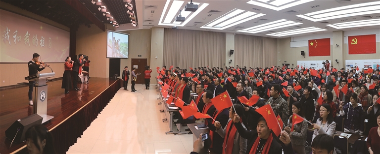 中国石油大学(华东)学历继续教育“开学第一课”上,师生同唱《我和我的祖国》。 (教育成长核心供图)。